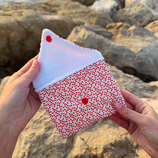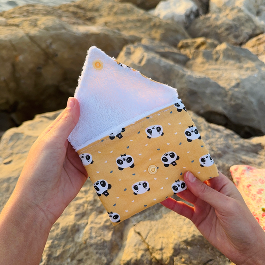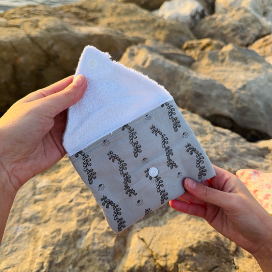 Pour ton prochain voyage, tu pourras transporter ton savon ou shampoing solide facilement avec cette matière éponge. Une pochette 100% good vibes !